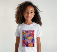 T-shirt unisex per bambini di alta qualità in cotone biologico 100% certificato.