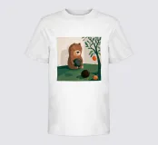 In a whimsical garden, a bear holds a juicy watermelon surrounded by fruits and a lush tree. The lively composition celebrates abundance and nature�s sweetness.