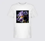 A stunning bearded iris in full bloom, captured in a close-up view against a dark background. The intricate details of the flower's ruffled petals, vibrant colors, and contrasting textures are beautifully highlighted. This exquisite artwork celebrates the beauty and elegance of nature's creations.