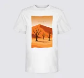 Disegno di viaggio minimalista della Namibia con Deadvlei o Sossusvlei nel Namib. Questo motivo tipico del paesaggio africano è perfetto per tutti i viaggiatori della Namibia che amano le dune di sabbia e i pittoreschi alberi di cammello.
