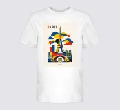 Un audace omaggio grafico a Parigi, reinterpretato attraverso geometrie pulite e vivaci blocchi di colore. I monumenti iconici si ergono in armoniosa sovrapposizione, con la Torre Eiffel al centro, incorniciata da nuvole stilizzate e forme architettoniche che conferiscono ritmo ed equilibrio alla composizione. Le forme piatte e i contrasti decisi creano un'estetica poster senza tempo, che trasmette nostalgia e allo stesso tempo è inconfondibilmente contemporanea.