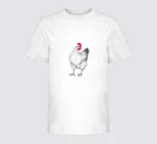 Un disegno a fineliner e pennarello ad acquerello di una gallina. È bianca, nera e rossa.