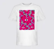 A mesmerizing and psychedelic pattern featuring repeating eyes amidst swirling, organic pink and magenta shapes. This bold and surreal artwork is both hypnotic and intensely energetic.