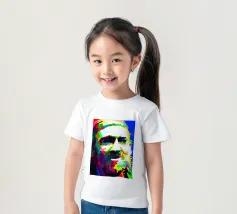 WPAP (Wedha's Pop Art Portrait) è uno stile artistico geometrico, vibrante e colorato che enfatizza gli angoli acuti e i contrasti di colore. Un ritratto di Sinéad O'Connor in stile WPAP presenterebbe la sua sorprendente struttura facciale con forme spigolose e taglienti in colori vivaci e contrastanti. La sua caratteristica testa rasata e il suo sguardo intenso sarebbero accentuati da audaci motivi geometrici. L'opera d'arte catturerebbe la sua profondità emotiva e il suo spirito ribelle, riflettendo la sua eredità di musicista e attivista senza paura.