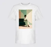 Mescolando toni di metà secolo e grazia moderna, questo pezzo esplora l'intersezione tra forma e solitudine. La palette di colori tenui e la geometria audace riecheggiano la presenza tranquilla della donna, creando una composizione che sembra un jazz visivo, sofisticato e senza sforzo.