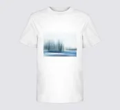 Delicate, abstract winter landscape with bare trees blurring into cool shades of blue and white. The gentle motion blur lends the motif a calm, almost dreamlike atmosphere and emphasises the quiet beauty of winter.