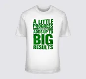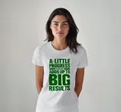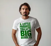 "Arte tipografica d'ispirazione con la frase 'A LITTLE PROGRESS EACH DAY ADDS UP TO BIG RESULTS' (Un piccolo progresso ogni giorno porta a grandi risultati) in grassetto verde, con caratteri rovinati su uno sfondo bianco pulito, che trasmette un messaggio di perseveranza e realizzazione!",