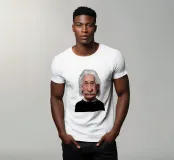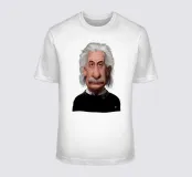 Illustrazione caricaturale umoristica del noto matematico e geniale scienziato austriaco Albert Einstein. Una delle caricature realizzate per la serie Celebrity Sunday, in cui un personaggio famoso viene ritratto in un giorno. L'idea è di mostrarli come in una fototessera per avere coerenza.