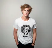 Albert Einstein è famoso per i suoi contributi rivoluzionari alla fisica, in particolare per lo sviluppo della teoria della relatività. Il lavoro del premio Nobel tedesco ha rivoluzionato la nostra comprensione dello spazio, del tempo e della gravità. Einstein ha sfruttato la sua fama per promuovere la pace, la comprensione internazionale e la giustizia sociale. Era anche una persona estremamente umoristica e anticonvenzionale, che lo ha reso una figura di culto popolare. Mostrate la vostra comprensione della scienza e dell'umorismo con questo disegno astratto e minimalista.