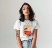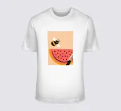 Un fresco mix di anguria succosa e api indaffarate! Questo disegno mostra la bellezza di una succosa anguria e delle api che le ronzano intorno.