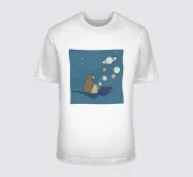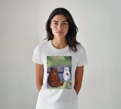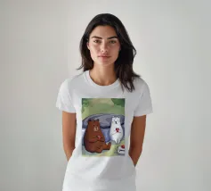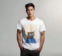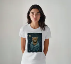 Un'illustrazione giocosa di due orsi che soffiano bolle nello spazio che aggiunge divertimento e meraviglia a qualsiasi arredamento o abbigliamento. Perfetto per i sognatori di tutte le età.