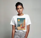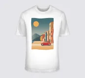 Un viaggio nostalgico attraverso il fascino mediterraneo, questo disegno cattura una Fiat 500 rossa d'epoca che percorre una città costiera illuminata dal sole. Le facciate dai toni pastello, la sabbia calda e dorata e il cielo sereno e turchese evocano il ritmo tranquillo delle giornate estive italiane. Con un'estetica retrò stilizzata, il pezzo combina l'armonia architettonica con il romanticismo del viaggio. Un vibrante tributo alla voglia di viaggiare senza tempo e alla gioia delle strade aperte.
