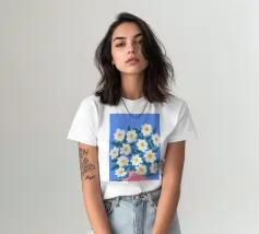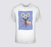 Un'illustrazione dolce e romantica di un bouquet di margherite bianche legate da un nastro rosa. Una piccola etichetta con la scritta "al mio amore" lo rende una rappresentazione perfetta di un gesto romantico e sincero.