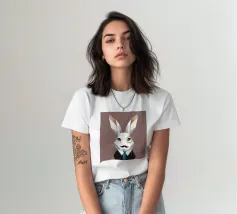 Due conigli dalle forme geometriche morbide e dai toni pacati della terra. La loro rappresentazione in diverse tonalità di marrone aggiunge un tocco giocoso ed elegante. Un'opera d'arte perfetta che incarna l'umore della primavera e la gioia della stagione. Raffigurazione geometrica di due conigli Armoniose tonalità della terra in beige, marrone e bianco Ideale per temi primaverili e decorazioni pasquali Design moderno con un tocco minimalista Perfetto per gli amanti dell'arte che apprezzano le rappresentazioni creative di animali
