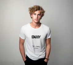 Bellissimo motivo tipografico per le calde giornate estive. Lettere dalla forma estetica e discreta che rappresentano l'affermazione "Enjoy the summer". Colori del mare molto armoniosi. Le vibrazioni della spiaggia si fanno sentire.