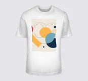 L'opera d'arte presenta una disposizione dinamica di forme geometriche dai colori vivaci. Cerchi, rettangoli e linee si intrecciano, creando un senso di movimento ed equilibrio.