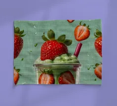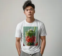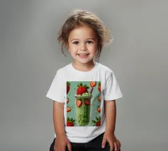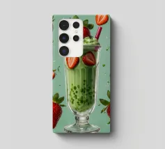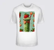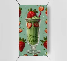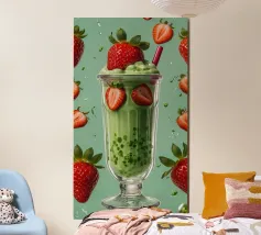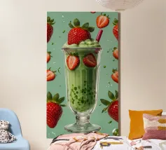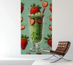 Un rinfrescante frullato verde menta con fragole fresche, servito in un elegante bicchiere, che crea una deliziosa e vivace delizia estiva.