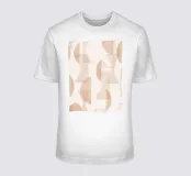 Il disegno presenta un'accattivante disposizione di cerchi, rettangoli e forme astratte di foglie sovrapposte, che alludono sottilmente a forme organiche all'interno della struttura. La texture granulosa aggiunge profondità e interesse visivo.