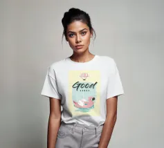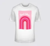good vibes art, design arcobaleno rosa, estetica retrò, grafica allegra, messaggio edificante, stile minimalista colorato