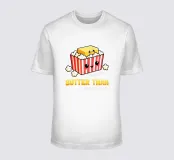 Una simpatica vignetta raffigura una scatola di popcorn sorridente con un blocco di burro in cima, circondato da cuoricini. Il testo recita umoristicamente: "Mi piaci più di chiunque altro!".