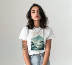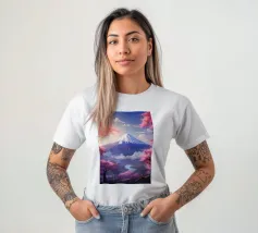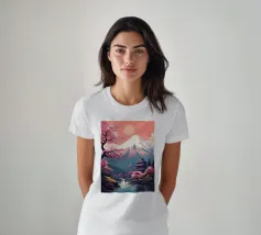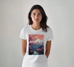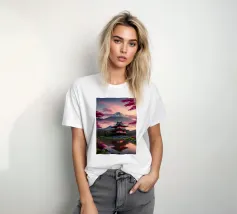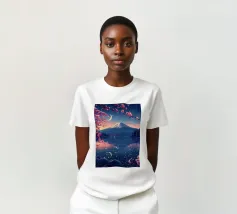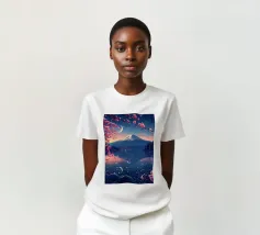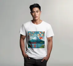 Una vista mozzafiato del maestoso Monte Fuji che si staglia nel cielo limpido di primavera. In primo piano, delicati fiori di ciliegio (sakura) danzano nel vento, conferendo alla scena una poetica leggerezza. La combinazione tra la forza della natura e la bellezza dei fiori simboleggia la transitorietà, l'armonia e il profondo legame tra la cultura giapponese e la natura. Questa immagine cattura perfettamente la magia della stagione della fioritura dei ciliegi, ideale per opere d'arte da parete, calendari o diari di viaggio. Suggerimento: perfetto per tutti coloro che sognano di viaggiare o che vogliono portare un pezzo di tranquillità e di estetica giapponese nella loro casa.