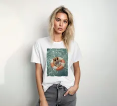 Una scena allegra: un lama che galleggia in una piscina, indossando felicemente un anello da bagno. Luminoso, divertente e inaspettato, questo disegno aggiunge umorismo e spirito estivo ai bagni, alle camere dei bambini o a qualsiasi altro spazio che abbia bisogno di un sorriso.