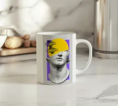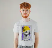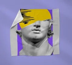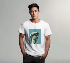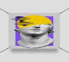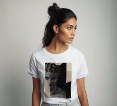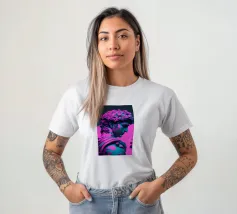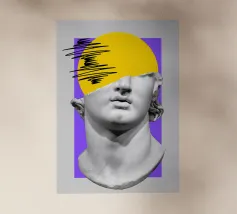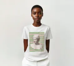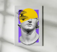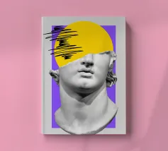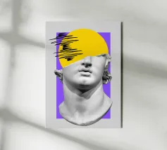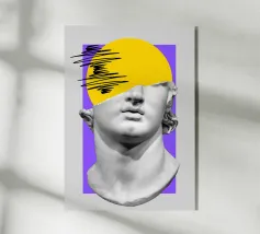 Un volto stilizzato ispirato ai busti antichi, attraversato da circuiti luminosi. Il passato incontra la tecnologia.