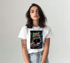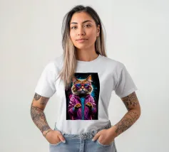 Diversi gatti con occhiali da sole sembrano partecipare a una festa in discoteca con palline a specchio e dischi in vinile. Il tutto è ambientato su uno sfondo rosa acceso e l'allestimento emana un'atmosfera giocosa e retrò.