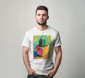 Piccolo cactus in vaso a forma di cubo con pittura fauvismo stile arte