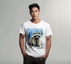 Godetevi una vivace illustrazione naturalistica con un procione in una scena autunnale con foglie che cadono.
