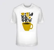 Questa composizione giocosa abbina il caffè alle sue origini botaniche. La ridotta combinazione di colori bicolore, giallo senape caldo e nero intenso, ricorda le illustrazioni scandinave della metà del secolo scorso. Piante di caffè stilizzate, chicchi danzanti e forme di foglie decorative spuntano allegramente dalla tazza dorata: una visualizzazione poetica della filosofia farm-to-cup. L'estetica serigrafica bidimensionale e il linguaggio ingenuo del design conferiscono all'opera un fascino artigianale. Perfetta per la cucina, per le pareti dei bar e per tutti coloro che non vogliono solo bere il caffè, ma vogliono celebrarne l'intera storia.