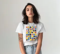Un disegno astratto geometrico audace e giocoso, caratterizzato da un mix di cerchi, quadrati e forme curve in una vivace tavolozza di ispirazione rétro. La composizione equilibrata e i toni caldi lo rendono un'aggiunta elegante agli interni moderni, all'arredamento di metà secolo e alle pareti colorate delle gallerie. Perfetto per chi ama i motivi astratti e l'estetica geometrica senza tempo. Progettato da showmemars