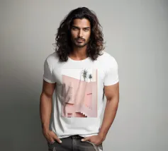 Questo disegno gioca ad arte con le luci e le ombre, che cadono sui semplici gradini di una scala minimalista. I toni caldi del beige e del rosa e le linee pulite creano un'atmosfera rilassante, quasi meditativa. Ideale per ambienti moderni e minimalisti, questo motivo cattura la bellezza della semplicità e aggiunge una delicata eleganza a qualsiasi stanza. Perfetto come murale o su accessori per la casa, porta in casa vostra un'architettura sottile e forme armoniose.
