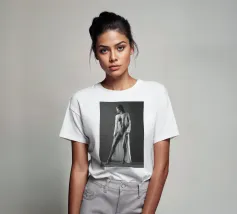 Uno scatto di nudo artistico di una giovane donna in vestaglia bianca