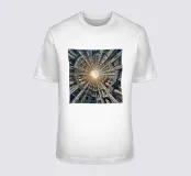 Un design architettonico intricato che forma una struttura a tunnel con simmetria a raggiera, che converge verso una luce incandescente al centro. La prospettiva crea profondità e un'estetica ipnotica e futuristica.