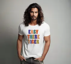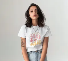 Un vivace disegno tipografico in stile retrò con la frase "Take It Easy" in grassetto, con caratteri ispirati agli anni '70. Il caldo mix di rosso, blu e verde menta con accenti di stelle aggiunge un'atmosfera giocosa e nostalgica, perfetta per un'estetica rilassata ed elegante. Un pezzo elegante e nostalgico che irradia calma e gioia. Creato da showmemars