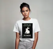 Stampa di Matrix, poster cinematografico alternativo, arte murale minimale, bianco e nero, White Rabbit, Rabbit Hole, Matrix, distopia, regalo per i fan del cinema