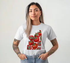 Il design allegro e colorato presenta un motivo di pomodori fresco e appetitoso.