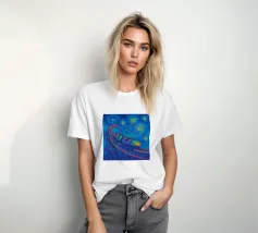 Portate movimento, energia e colore nel vostro spazio con questa suggestiva opera d'arte che raffigura un treno proiettile futuristico che sfreccia in un vorticoso cielo notturno stellato. Dipinta in vibranti tonalità neon di blu, rosa, giallo e arancione, la scena fonde la tecnologia moderna con un'arte cosmica e sognante. Le scie luminose e le pennellate strutturate creano un senso di velocità e meraviglia, rendendolo perfetto per gli appassionati di temi fantascientifici, arte di viaggio e arredamento contemporaneo audace. Un centrotavola dinamico che aggiunge emozione e immaginazione a qualsiasi ambiente.