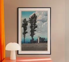 Japanese Ukiyo-e and Shin-Hanga prints, from serene landscapes by Kawase Hasui to the iconic waves of Hokusai and Hiroshige. Ukiyo-e, literally “pictures of the floating world,” is a Japanese art form that captures the beauty, elegance, and transience of everyday life. Originating in the Edo period, these woodblock prints and paintings depict landscapes, city scenes, theater, and the grace of women, blending realism with stylized design. Characterized by bold lines, harmonious color palettes, and meticulous attention to detail, Ukiyo-e celebrates the ephemeral moments of life—the shimmer of rain on a street, the curve of a mountain, the fleeting expression of a courtesan. Later, the Shin-Hanga movement revived this tradition with a modern sensibility, emphasizing light, mood, and atmosphere.
