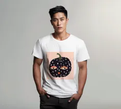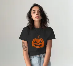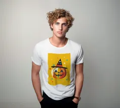 Un'allegra zucca di Halloween dai colori vivaci e dalle forme geometriche: moderna, giocosa e ideale per i temi autunnali di Halloween. Zucca di Halloween colorata con volto Linee pulite e design geometrico Colori vivaci per un look moderno Illustrazione giocosa di Halloween