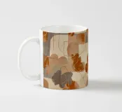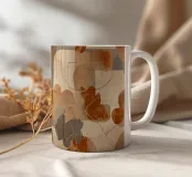 Un sofisticato motivo astratto che combina motivi di foglie botaniche con forme geometriche art déco nei caldi toni della terra: arancio ruggine, terra di Siena bruciata, grigio e crema. Questo disegno artistico fonde elementi floreali organici con forme geometriche moderne per un'estetica raffinata e vintage-moderna. Perfetto per gli amanti dell'art déco, per gli appassionati di arte astratta, per i fan delle tonalità della terra e per chiunque apprezzi l'elegante fusione di design botanico e geometrico con colori caldi e naturali.