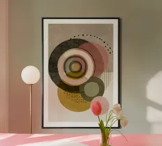 Una giocosa composizione astratta, ricca di audaci forme ispirate alla giungla e di pennellate vivaci. Questo disegno a mano combina verde acqua, blush, senape e menta in un layout gioioso e contemporaneo, perfetto per ravvivare gli interni moderni con un tocco tropicale.