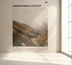 Scattata lungo il leggendario Circuito dell'Annapurna in Nepal, questa fotografia cattura la cruda bellezza e la tranquilla intensità dell'alto Himalaya. Cime imponenti, vallate ampie e la solitudine dell'aria alpina si fondono in un'inquadratura che racconta la storia di uno dei trekking più iconici del mondo. Ideale per interni moderni, per gli amanti dell'avventura e per tutti coloro che sognano luoghi al di sopra delle nuvole.