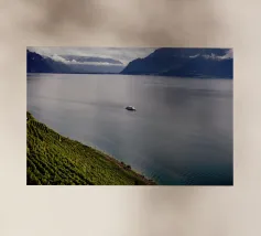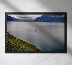 Nave sul lago di Ginevra, Cantone di Ginevra, Svizzera, fotografata da Simon Koy.