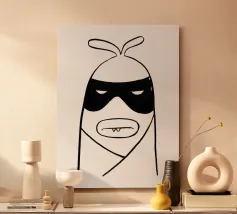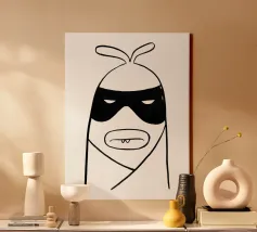 Ecco Bandit, un personaggio anticonformista dalla silhouette a forma di fagiolo, sormontato da due antenne giocose. Il suo volto è definito da un'audace maschera nera che allude a una segreta malizia, con occhi socchiusi in perenne sospetto. Una bocca arrotondata si annida al di sotto, rivelando le sue affascinanti zanne a denti stretti! I tratti minimali di Bandit e le linee nitide e color inchiostro gli conferiscono un fascino comico e misterioso: una creazione eccentrica il cui contegno sommesso nasconde un mondo di strane avventure!