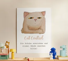 Illustrazione di un gatto disegnata a mano con inchiostro e acquerelli, digitalizzata per la stampa con possibilità di personalizzazione. È possibile modificare e aggiungere testo (ad esempio il proprio nome) e cambiare lo sfondo per alcuni prodotti. Provatelo! Divertitevi!