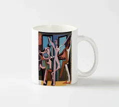 Questa litografia di Marc Chagall illustra una scena biblica, probabilmente raffigurante il re Davide che fugge da una finestra mentre la moglie Michal fa la guardia. Eseguita nella caratteristica tavolozza blu, grigia e bianca di Chagall, cattura un momento di dramma, lealtà e passione. Le figure sognanti e fluttuanti e la semplice ambientazione architettonica trasmettono una narrazione emotiva e senza tempo.
