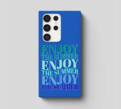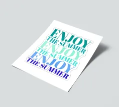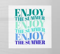 Bellissimo motivo tipografico per le calde giornate estive. Lettere dalla forma estetica e discreta che rappresentano l'affermazione "Enjoy the summer". Colori del mare molto armoniosi. Le vibrazioni della spiaggia si fanno sentire.