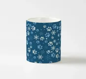 Impronte di zampe con fiocchi di neve su sfondo blu. Disegno di tessuto senza cuciture. Buon anno, inverno, bambini modello di design tessile